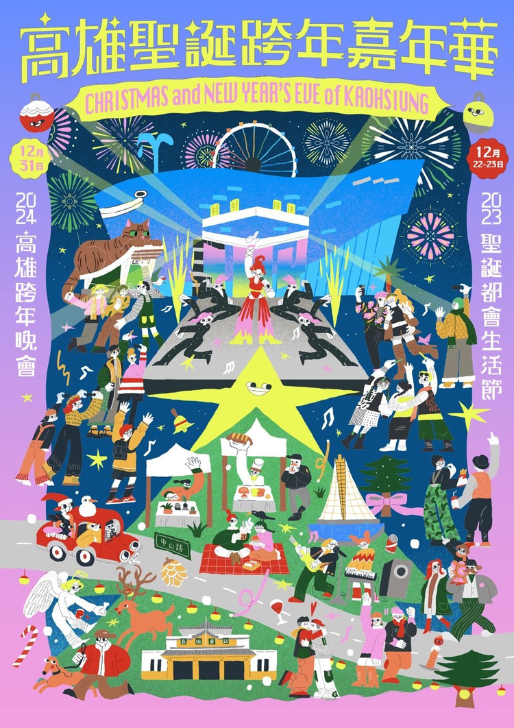 ?「高雄聖誕跨年嘉年華」首度結合「2023聖誕都會生活節」及「2024高雄跨年晚會」兩大重量級盛典,由20公尺高的聖誕樹揭開序幕,還有聖誕市集、「聖誕商圈優惠券」一起歡度佳節,更規劃超強卡司從聖誕唱到跨年。12月31日跨年晚會在夢時代登場,倒數後施放240秒璀璨跨年花火,迎接全新的2024年。?